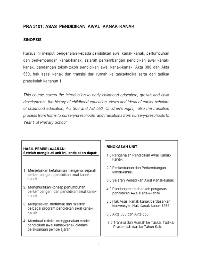 Pendidikan Awal Kanak Kanak Di Malaysia 1